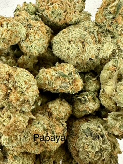Papaya is an indica-dominant hybrid cannabis strain that is known for producing a mental calmness, though many consumers also find that this strain makes them energetic and productive. Nirvana Seeds bred this to be their take on a Mango strain and crossed Citral #13 with Ice #2 to make their own fruit. They met their own challenge and Papaya smells uncannily like its namesake. The taste is similar to its tropical fruit counterpart, but a spicy, peppery side also becomes apparent.
